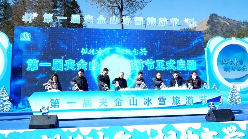 12月24日,第一届夹金山冰雪旅游节在宝兴县神木垒景区启幕。
